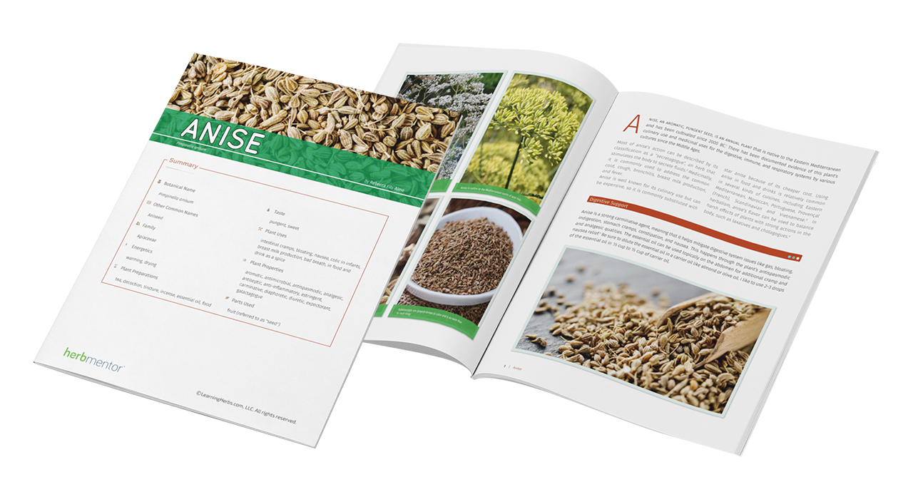 Anise, an aromatic, pungent seed, is an annual plant that is native to the Eastern Mediterranean and has been cultivated since 2000 BC.1 There has been documented evidence of this plant’s culinary use and medicinal uses for the digestive, immune, and respiratory systems by various cultures since the Middle Ages. Most of anise’s action can be described by its classification as a “secretagogue”, an herb that stimulates the body to secrete fluids.2 Medicinally, it is commonly used to address the common cold, cough, bronchitis, breast milk production, and fever.