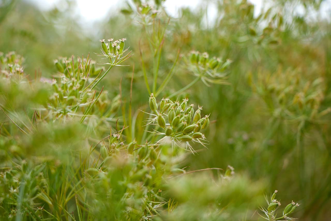 Cumin is an annual herbaceous plant growing 12 to 20 inches tall. It has slender, branched stems with finely divided, feathery leaves and small pink or white umbels of flowers. The plant produces elongated, ridged fruits—what we call cumin seeds—each containing a single seed. Cumin thrives in hot, arid climates and is drought-tolerant, but it prefers well-drained, loamy soils and plenty of sunlight. Harvesting typically occurs around four months after sowing when the seed heads are dry and ready to be threshed.19,20